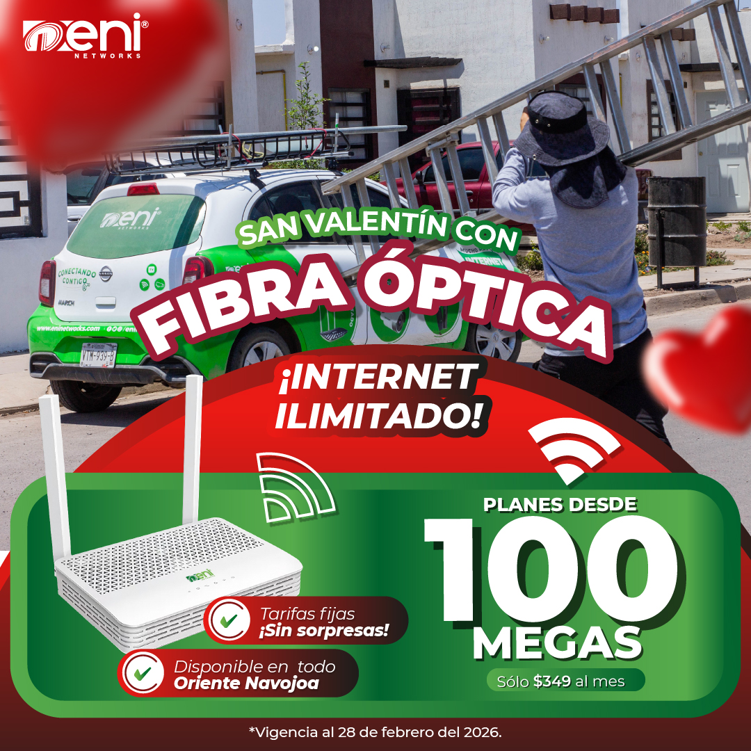 *La oferta comercial de Fibra Óptica es válida únicamente en zonas específicas de Hermosillo y Navojoa, Sonora; Querétaro, Querétaro; Cancún, Quintana Roo; y Mérida, Yucatán. La disponibilidad del servicio está sujeta a cobertura y aplica sólo en colonias participantes, las cuales deberán confirmarse directamente con el vendedor autorizado.